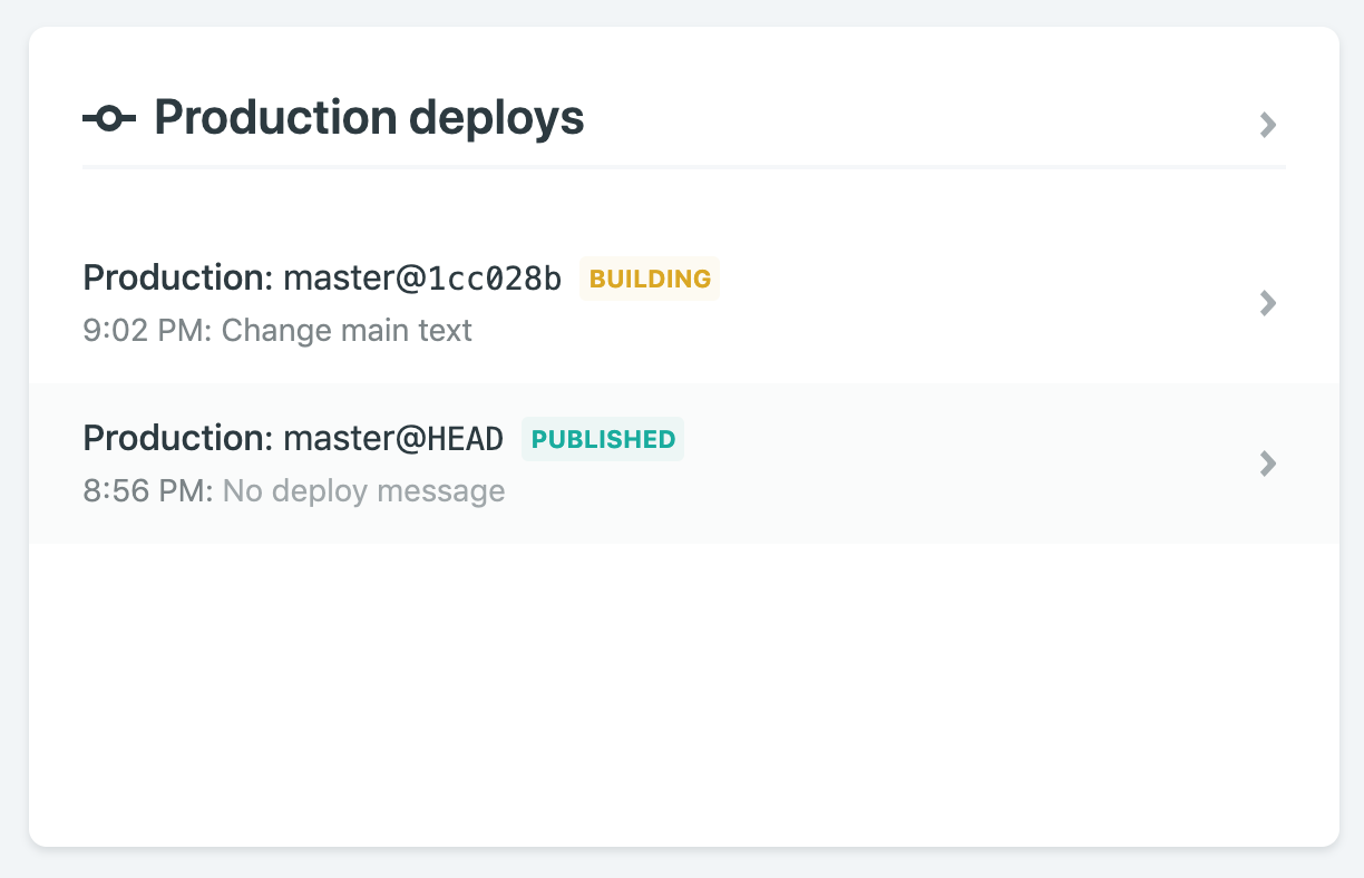 앞서 말한 Netlify의 강력한 기능 중 하나는 Github과 연동하여, Push 될 때마다 자동으로 배포가 진행된다는 것이다. 이를 테스트해보기 위 해 위와 같이 출력되는 테스트를 약간 바꿔보았다. 변경된 내용을 commit 후 바로 push!
