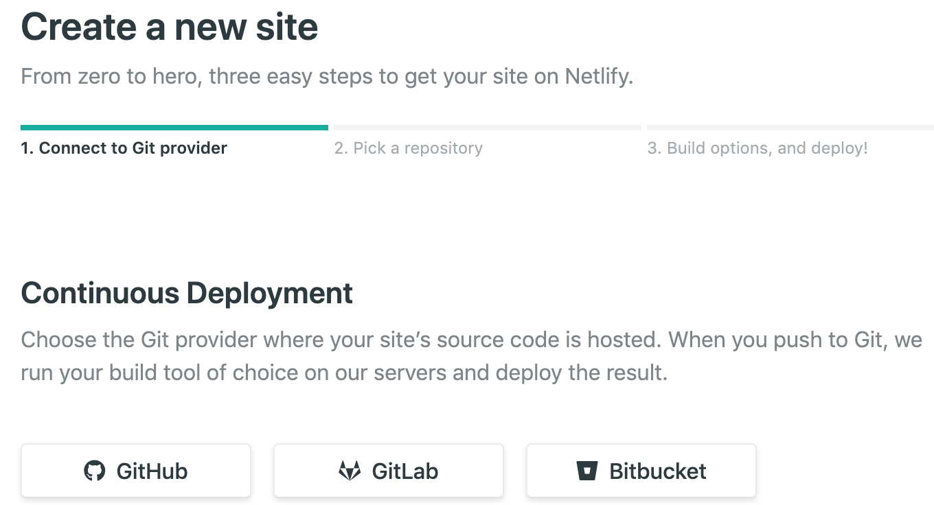 처음 서비스를 사용하는 경우 회원가입에서 위의 화면으로 자동 접속될 것이고, 이미 생성한 프로젝트가 있다면 로그인 후 Create a new Site 버튼을 누르면 위의 화면으로 이동한다. 방금 Github에서 기본 프로젝트를 만들었으므로 Github 버튼을 클릭한다. 그리고 나오는 새창에서 Github의 권한 확인 창에서 확인을 눌러 Netlify의 권한을 승인해준다.