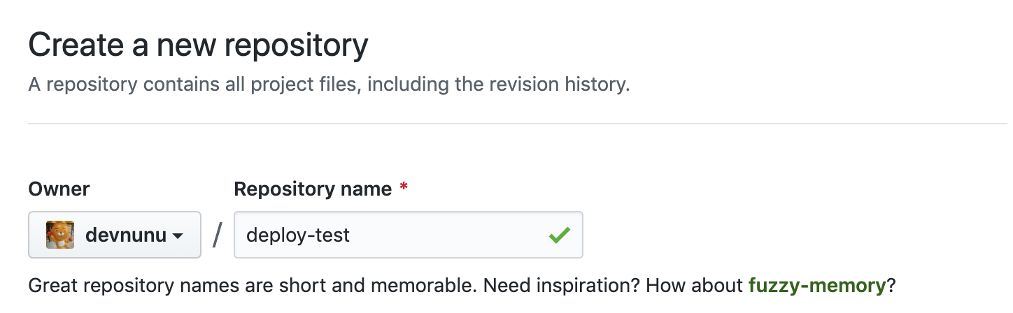 Netlify와 Github을 연동해야 하므로, Github에서 기본 프로젝트를 만들어 준다. 나는 새로운 프로젝트의 테스트를 위해서 deploy-test라는 레포지터리를 생성했다.