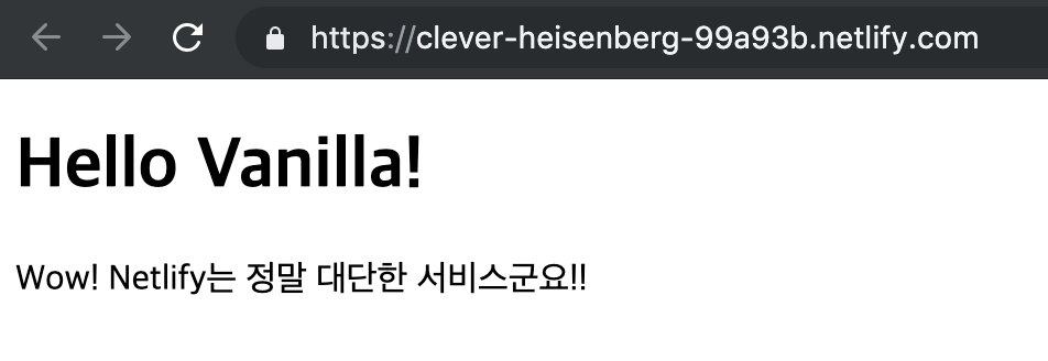 변경된 텍스트가 잘 적용되었다! Netlify를 사용하면 정적인 페이지를 쉽게 배포하고 사람들에게도 공유할 수 있으니 프로젝트할 맛이 나지 않을까. 여러모로 심플하고 대단한 서비스다.