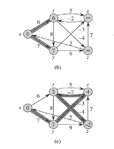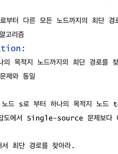 반응형 2017/06100 [알고리즘] 동적 계획법(Dynamic Programming) - 1 동적 계획법(Dynamic Programming) 우리가 전에 피보나치 수를 계산하기 위해 재귀 함수를 사용했었다.이는 같은 연산이 반복되기 때문이다. 그러나 이 함수의 진행 과정을 살펴보면 중복이 심하다는 것을 알수 있다. 위의 그림에서 보면 fib(2)가 여러번 반복되며 오버헤드가 증가함으로 결국 비효율적인 코드가 된다. 따라서 이러한 중복을 제거 하기 위해서 메모이제이션(Memoization)이라는 테크닉을 사용한다.이는 사전에는 나오지 않는 프로그래밍 테크닉이며, 계산된 값을 버리지 말고 저장한다는 뜻이다예를 들어 위의 그림에서 계산이 된 fib(2) 값을 저장해 놓고 있다가, 필요한 경우 계산없이 호출하게 된다.이렇게 저장되는 배열을 '캐시'라고 하며, 중간에 저장하는 걸 '캐싱한다'라고 부른다.. 2017. 6. 6. [알고리즘] 최단경로(Shortest Path Problem) - 2 최단경로(Shortest Path Problem) - 2 위의 그림은 Bellman-ford 알고리즘의 예이다.첫번째 라운드에서 모든 엣지들에 대해서 relax 한다.relax연산이 끝나면 초기 시작점과 인접한 엣지들의 ∂값이 세팅된다.이렇게 순차작으로 relax 연산을 실행한다.위 그림은 한가지 실행 가능한 예이며, 어떠한 엣지를 선택하느냐에 따라서 다른 순서를 가진다. 이 Bellman-ford는 시간 복잡도에서 그리 좋은 알고리즘은 아니다.위의 그림은 왜 Bellman-ford의 시간 복잡도가 비효율적인지 알려준다.Bellman-ford 의 최악의 상황이 표현되었고, d[v]가 한번 갱신될때 마다 우측의 노드들의 값이 바뀐다.이는 불필요한 계산이 증가한다는 것이고, 그에따른 오버 헤드도 증가한다. .. 2017. 6. 3. [Backjoon] 11653번 문제 - 소인수분해 정수 N이 주어졌을 때, 소인수분해하는 프로그램을 작성하시오. 풀이 우선 2개의 반복문을 사용한다.외부에 while은 입력 받은 수가 나눗셈 연산을 거듭하면서 마지막에 1로 수렴하는 것을 판단한다.for는 나눠지는 수를 찾기 위해 i가 2부터 증가하며 만약 입력 받은 값이 i로 나눠진다면 나눈후 i값을 출력한다. 123456789101112131415161718192021import java.util.Scanner; /** * Created by homr on 2017. 6. 3.. */public class Main { public static void main(String[] args){ Scanner sc = new Scanner(System.in); int num = sc.nextInt(); wh.. 2017. 6. 3. [알고리즘] 최단경로(Shortest Path Problem) - 1 최단경로(Shortest Path Problem) - 1 이번시간에는 그래프 알고리즘 중에서 가장중요하고 유명한 최단 경로에 대해 알아보자최단 경로는 이름 그대로 가장 짧은 경로를 찾는 것이다.먼저 최단경로 문제에서는 가중치를 가진 그래프가 주어진다.사실 최단 경로에서는 방향/무방향이 무의미하다. 따라서 방향 그래프를 예시로 설명을 진행한다. 경로의 길이를 정의해야하는데, 길이는 그 경로상에 있는 모든 가중치들의 합이다.따라서 최단 경로는 U에서 V로가는 가장 짧은 길이를 말한다.그러므로 이렇게 U에서 V까지의 최단 경로를 ∂(U,V)라고 정의한다.최단 경로 문제의 목적은 ∂(U,V)를 구하는 것이다. 최단 경로의 문제의 유형에 따라 구분을 할수 있다.먼저 하나의 출발 노드로부터 모든 노드의 최단 경로를.. 2017. 6. 2. 이전 1 ··· 19 20 21 22 23 24 25 다음 반응형