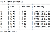1 2 3 4 5 6 7 8 9 | CREATE TABLE `student` ( `id` tinyint NOT NULL , `name` char(4) NOT NULL , `sex` enum('남자','여자') NOT NULL , `address` varchar(50) NOT NULL , `birthday` datetime NOT NULL , PRIMARY KEY (`id`) ); | cs |