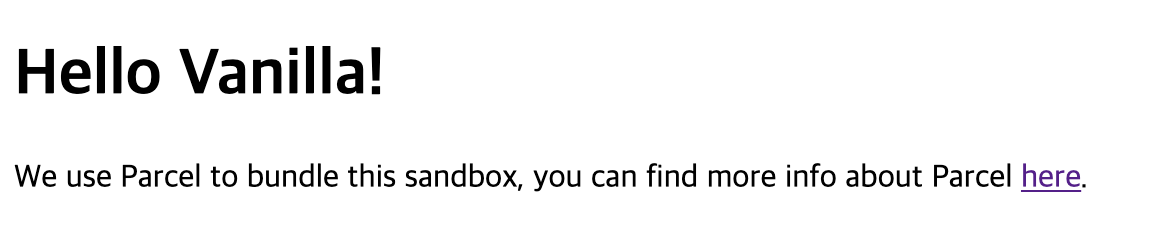테스트용 프로젝트를 생성하므로 코드 샌드박스(http://codesandbox.io)에서 parcel을 사용한 바닐라 자바스크립트 프로젝트를 하나 만들어줬다. 생성된 프로젝트를 Github과 연동할 수 있으나, 로컬에서 작업하는 것이 더 편해서 zip 파일로 다운, 압축 해제 후 만들어둔 Github 레포지터리에 업로드했다.