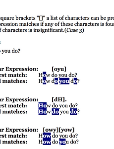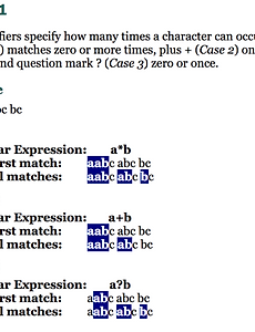 정규표현식 - 수량자-2 Page 15 - { } 원하는 값의 수량을 정확하게 지정함 Case 1.{5} 5개의 문자를 선택. All matches의 경우 마지막이 5개가 되지않으므로 남는것을 반환 Case 2[els] e, l, s가 1개 이상, 3개 미만인 값을 선택 Case 3[a-z]{3,} a에서 z까지 3개 이상인 문자를 선택 Page 16 - { }를 이용하여 *,+,? 와 동일한 기능을 사용하는 방법 Case 1 - Case 2, Case 3 - Case 4, Case 5 - Case 6이 동일한 결과이다. Page 17 - ?가 수량자(*, +, ?)와 만났을때 기능이 바뀐다 Case 1 - Case 2* 는 0개에서 여러개를 지정하는 수량자이다.*와 ?가 결합하면 *는 0개를 지정하는 ..