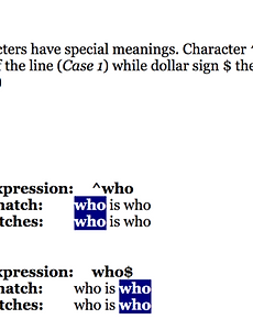 반응형 분류 전체보기340 [정규 표현식] 모든 문자 정규표현식 - 모든 문자 Page 5 - .(point) 문자 .(point)는 모든 문자를 문자 하나 단위로 가르킨다(* - 와일드 카드와 비슷) Case 1. 하나로 문자 1개를 가르킨다. Case 2. 6개로 문자 6개를 가르킨다. 하단의 All matches는 마지막 문자가 6개가 되지 않으므로 끝을 제외시킨다. Page 6 - \(escape 문자)를 사용하여 .을 표시 Case1일반 문자 . 을 찾고 싶었지만 기능이 예약되어있으므로 앞의 문자가 선택된다. Case2\(escape 문자)를 사용하여 .를 일반문자로 만들어 검색함 Case3. 일반문자와 .기능 문자를 혼합하여 사용하는 예제 2017. 4. 18. [정규 표현식] 위치와 이스케이핑 정규표현식 - 위치와 이스케이핑 page3 - 검색 문자의 위치를 설정 Case 1^ (캐럿 문자) : 소스상에 시작되는 문자를 검출Regular Expression 으로 설정된 검색어로, 전체 문자열중에 시작 문자를 검출 Case 2 $ (달러 문자) : 소스상에 끝에 있는 문자를 검출Regular Expression 으로 설정된 검색어로, 전체 문자열중에 마지막 문자를 검출 page4 - 기존 예약 문자를 일반문자로 사용하는 법 \(escape 문자) : 기존에 기능이 예약되어있는 문자를 일반 문자로 쓸때 사용 Case 1달러가 앞에오는 문자를 찾으려 하였으나 $는 기능이 예약된 문자이므로 동작하지 않음 Case 2\ (escape 문자)를 사용하여 $문자를 일반문자화 하여 사용함 Case 3초기에 .. 2017. 4. 18. [정규 표현식] 정규 표현식 패턴 기본 정규표현식(Regular Expression) 정규표현식(Regular Expression) : 간단한게 말해서 문자를 처리하기 위한 언어이다. 여기서 처리란 검색, 변경등을 의미한다. 그전에 이와 같은 작업을 위해서는 먼저 조작할 언어를 찾아내야하는데 여기서 정규 표현식이 큰 힘을 발휘하게 된다. 혹자는 정규표현식이 가독성이 별로 좋지 않으므로 사용을 자제하라고 하지만, 많은 문자나 데이터를 사용할 필요가 없는 분야일 경우일 가능성이 크다. 따라서 분야나 경우에 맞추어 본인이 사용 기준을 판단하는것이 좋다. 정규표현식은 문법이 간결하고 간단하기때문에 배우기 쉬우므로, 한번 배워두고 꾸준히 사용하는 것이 좋다고 생각한다. 포스팅은 생활코딩의 정규표현식 강의를 바탕으로 쓰여졌으며 아래 웹 사이트의 정규 표.. 2017. 4. 18. [정규 표현식] 정규 표현식 강의 강의 정규표현식의 예제가 있는 홈페이지 도구들 gskinner 정규표현식을 작성하면서 실시간으로 그 결과를 테스트 할 수 있는 도구. 패턴을 저정할 수 있고, 저장한 패턴을 URL를 통해서 공유할 수 있다. 또한 다른 사용자들이 공유한 다양한 패턴들도 쉽게 찾아서 이용할 수 있다. Regexr 정규 표현식에 대한 도움말과 각종 사례들을 보여주는 서비스로 정규표현식을 라이브러리로 만들 수 있는 기능도 제공하고 있다. Regexper 정규 표현식을 시각화해서 보여주는 도구 http://www.regexper.com/ 2017. 4. 18. 이전 1 ··· 82 83 84 85 다음 반응형